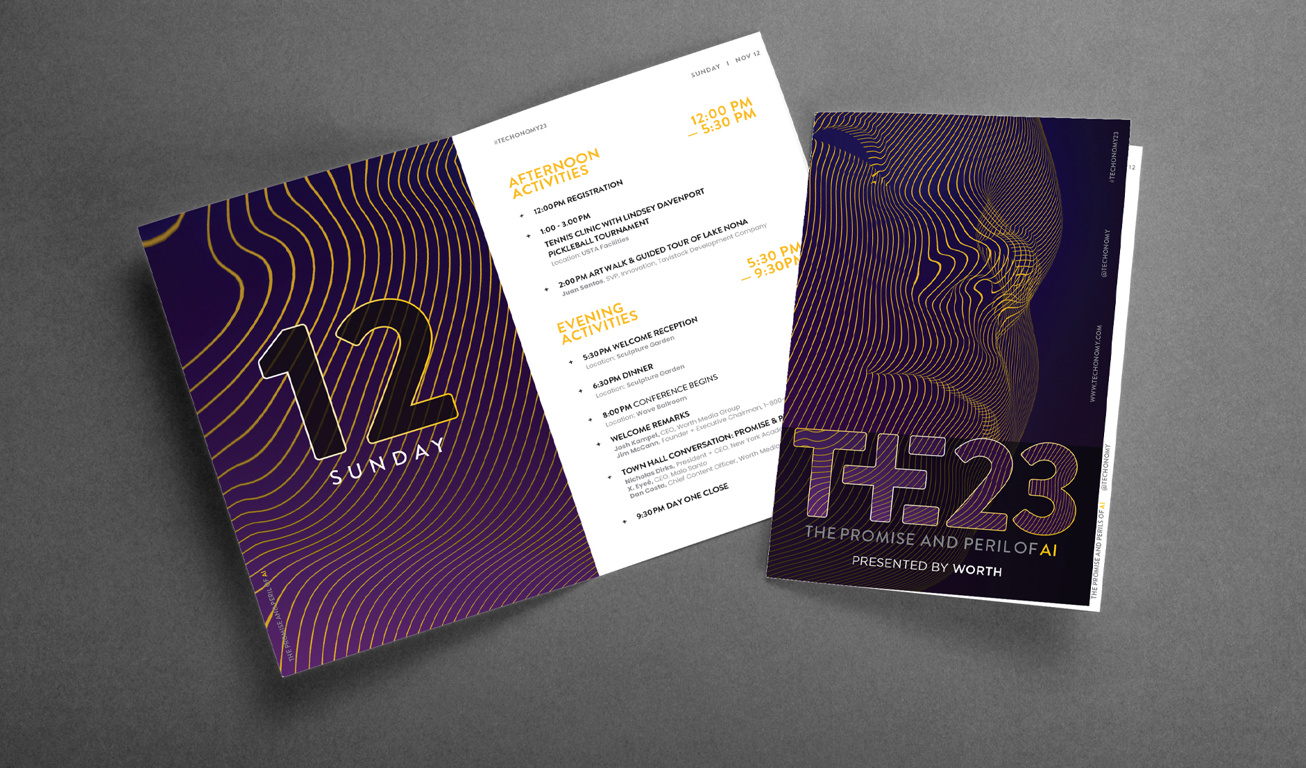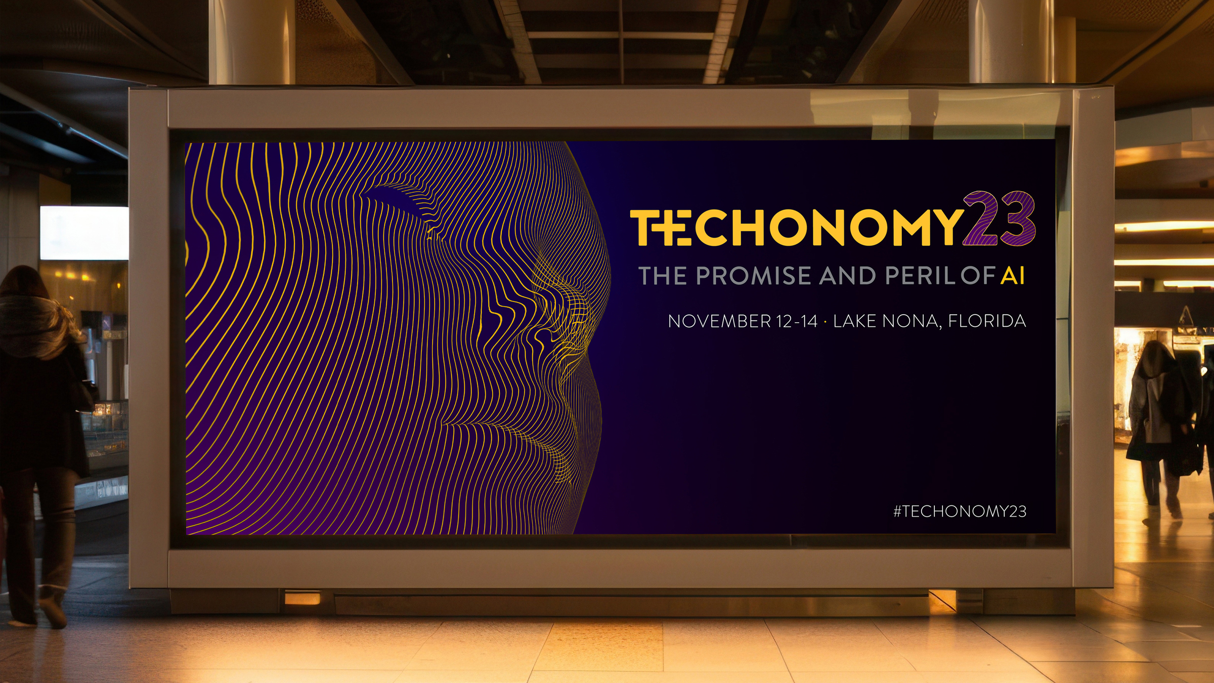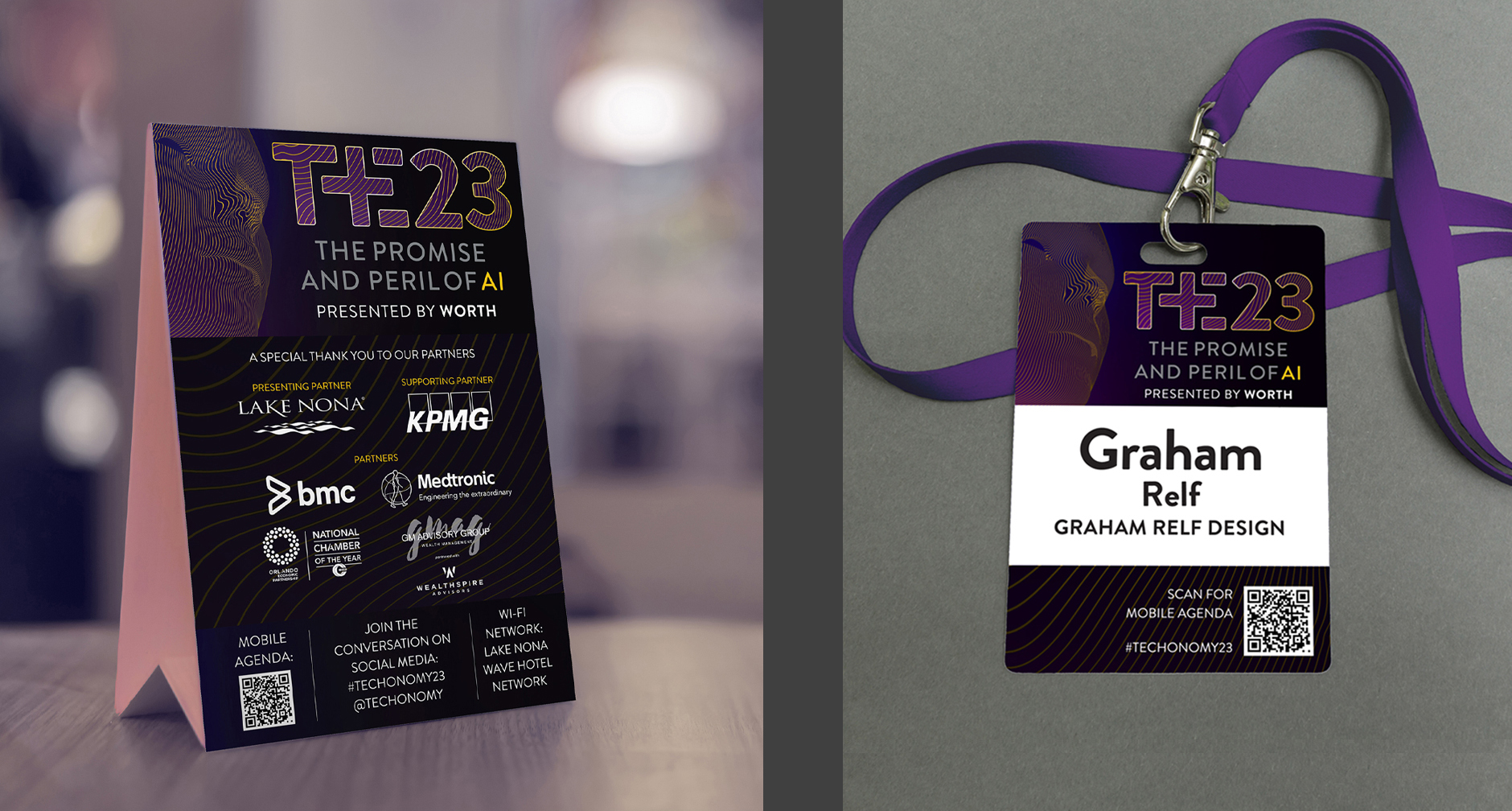 Techonomy’s annual conference is a high-end event that focuses on how technology impacts business, commerce and everyday life. With a focus on the multiple impacts of AI, Techonomy needed a strong visual identity that represented both the promise and perils of AI, while raising awareness around of the conference, and creating a cohesive visual presence, which maintained the Techonomy brand feel. Graham Relf Design created a strong visual direction that was implemented to social campaign templates, print advertising, event collateral and screen presentation graphics.
