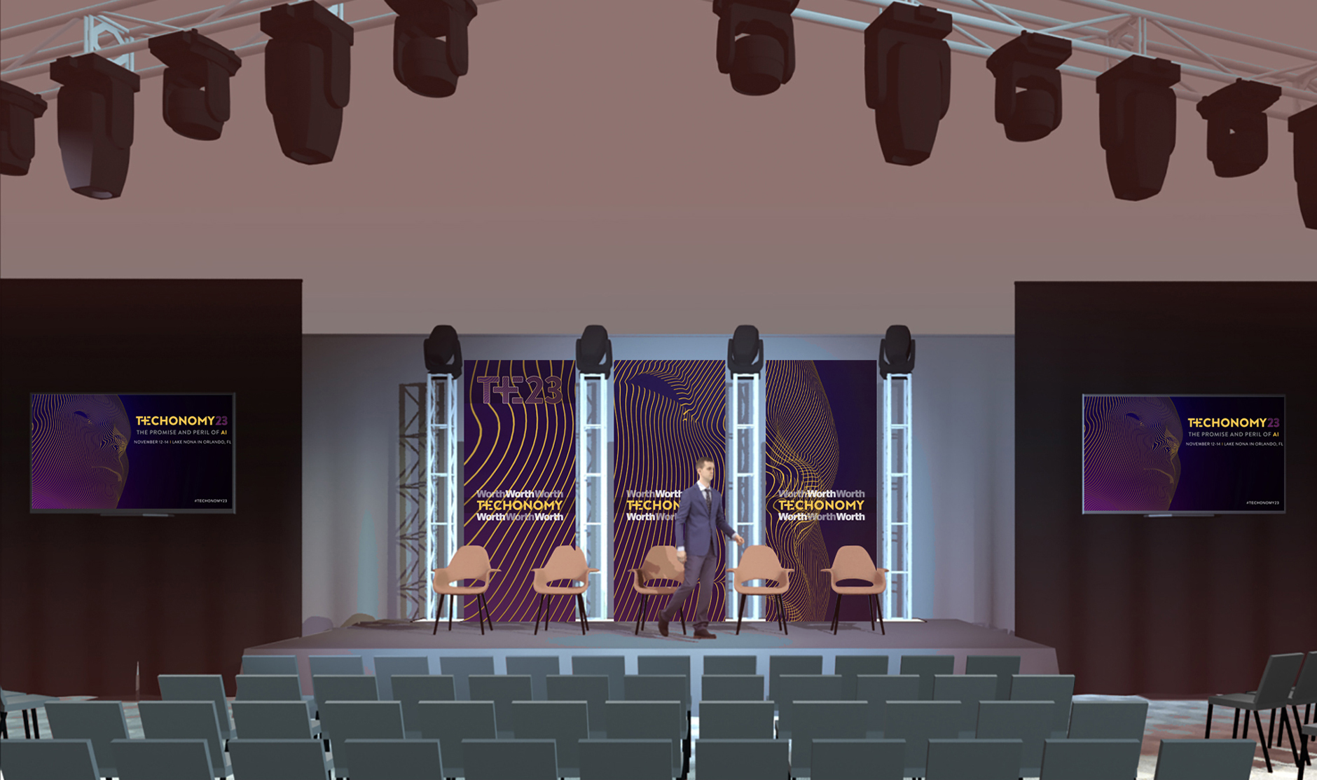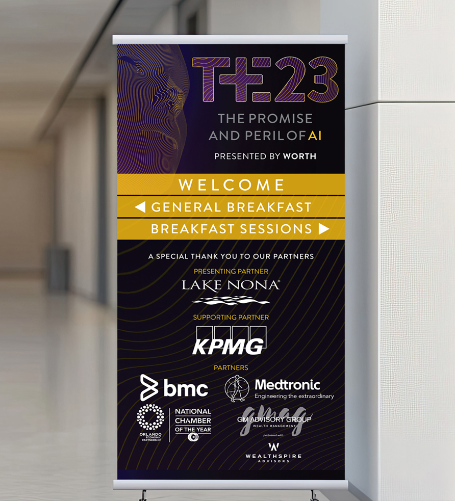Brand mark, brand visuals and look, social media visuals, event collateral, signage and stage background.